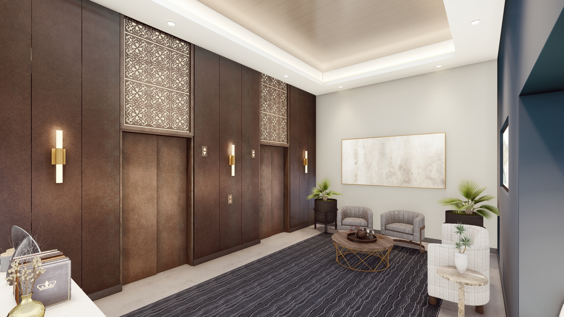 The interiors balance modern elegance with warmth and comfort. Rich materials, tailored lighting, and textural contrast create an inviting atmosphere that feels both refined and approachable. Shared amenities and rooftop spaces foster wellness, social connection, and a strong sense of community across generations.