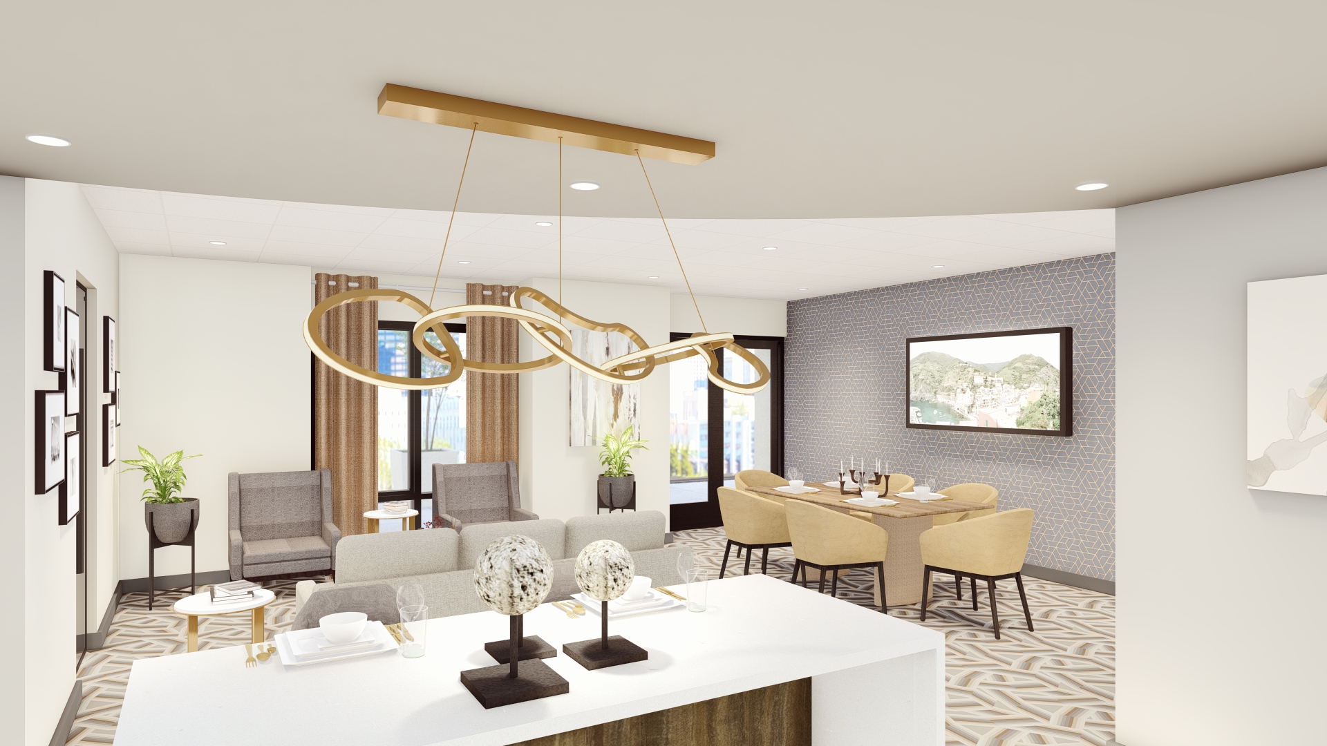 Our firm provided full interior design services for this new construction project, creating bright, contemporary spaces that reflect the energy and sophistication of urban life. The design brings together 203 workforce apartments and 227 senior independent living units—each offered below market rate—along with 36,000 SF of amenity areas and nearly 23,000 SF of retail.