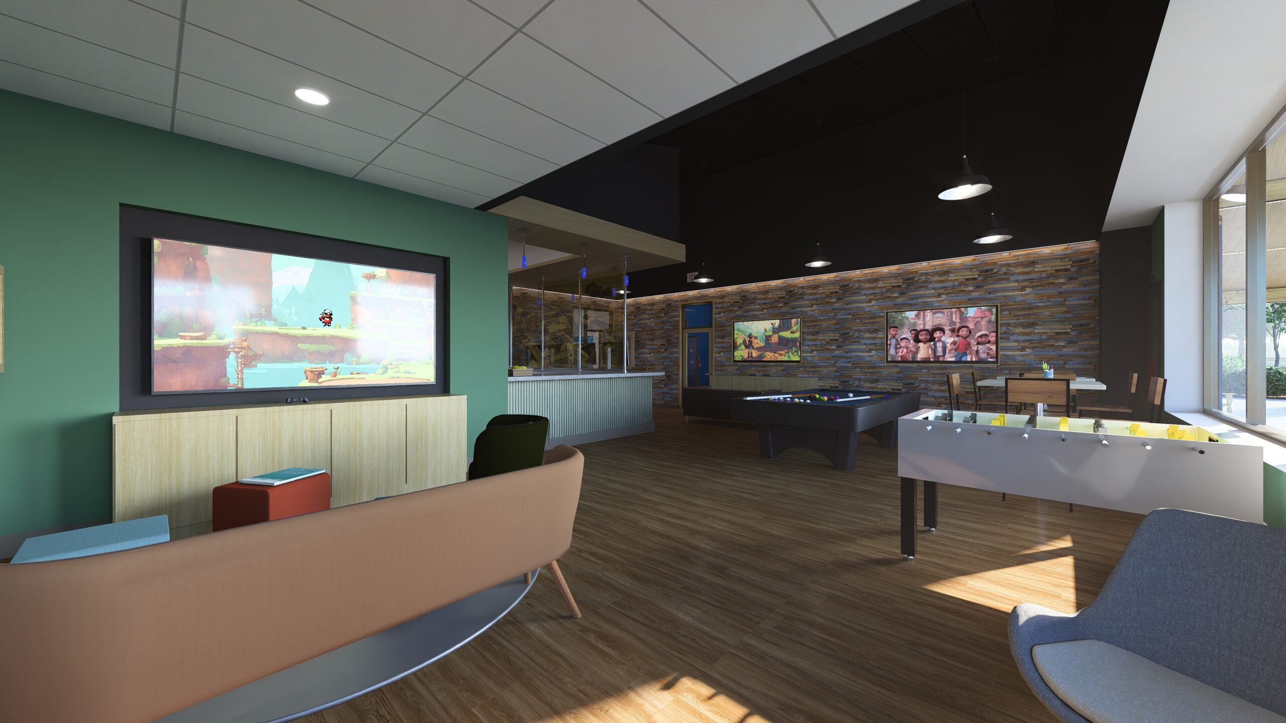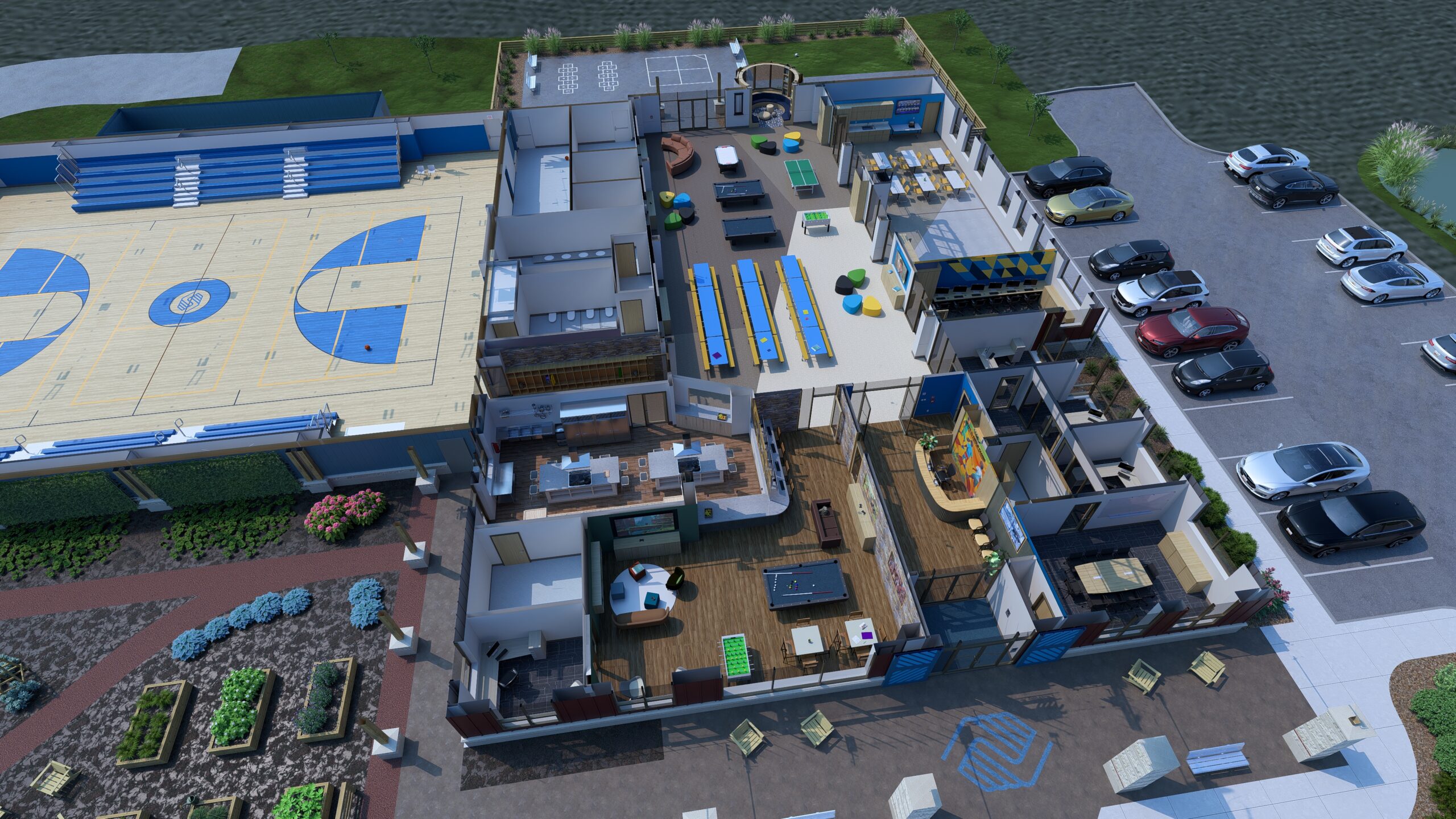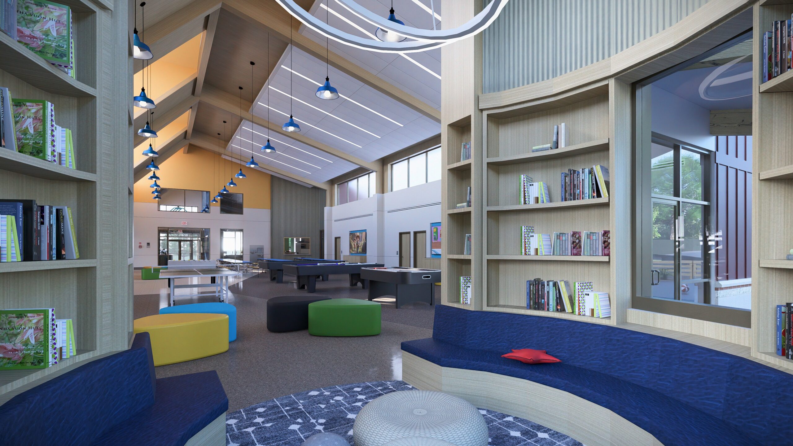 We are currently designing a new facility in Lothian, Maryland for Boys & Girls Clubs of Annapolis & Anne Arundel County. Our scope includes designing both the interior and exterior of the roughly 20K sf. facility, including an approximately 8,500 sf. basketball gymnasium, which will be separately accessible for community events. The program for the club includes a teaching kitchen, community pantry, teen center, classrooms and offices, all centered around a roughly 3,500 sf. multi-purpose game room.