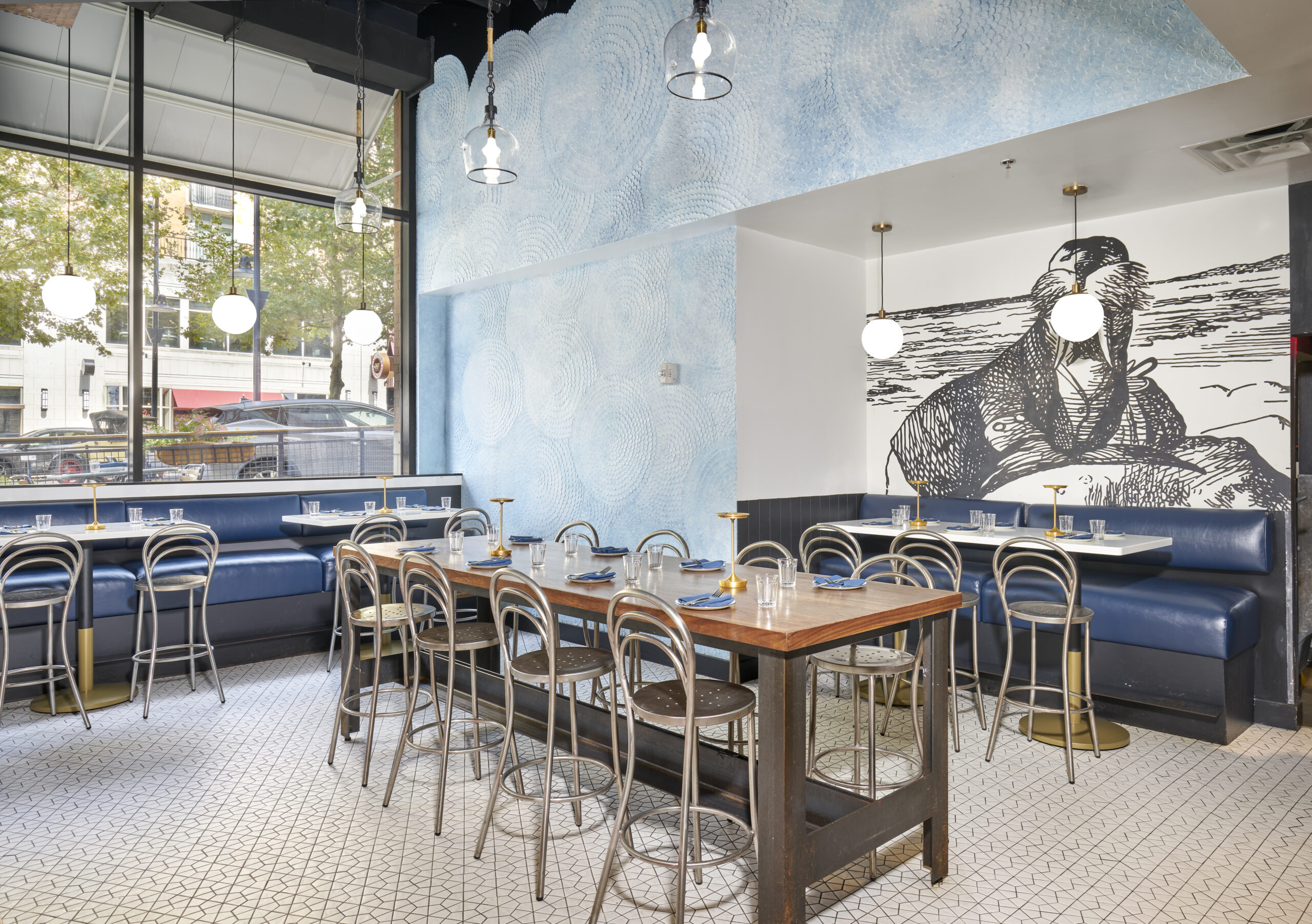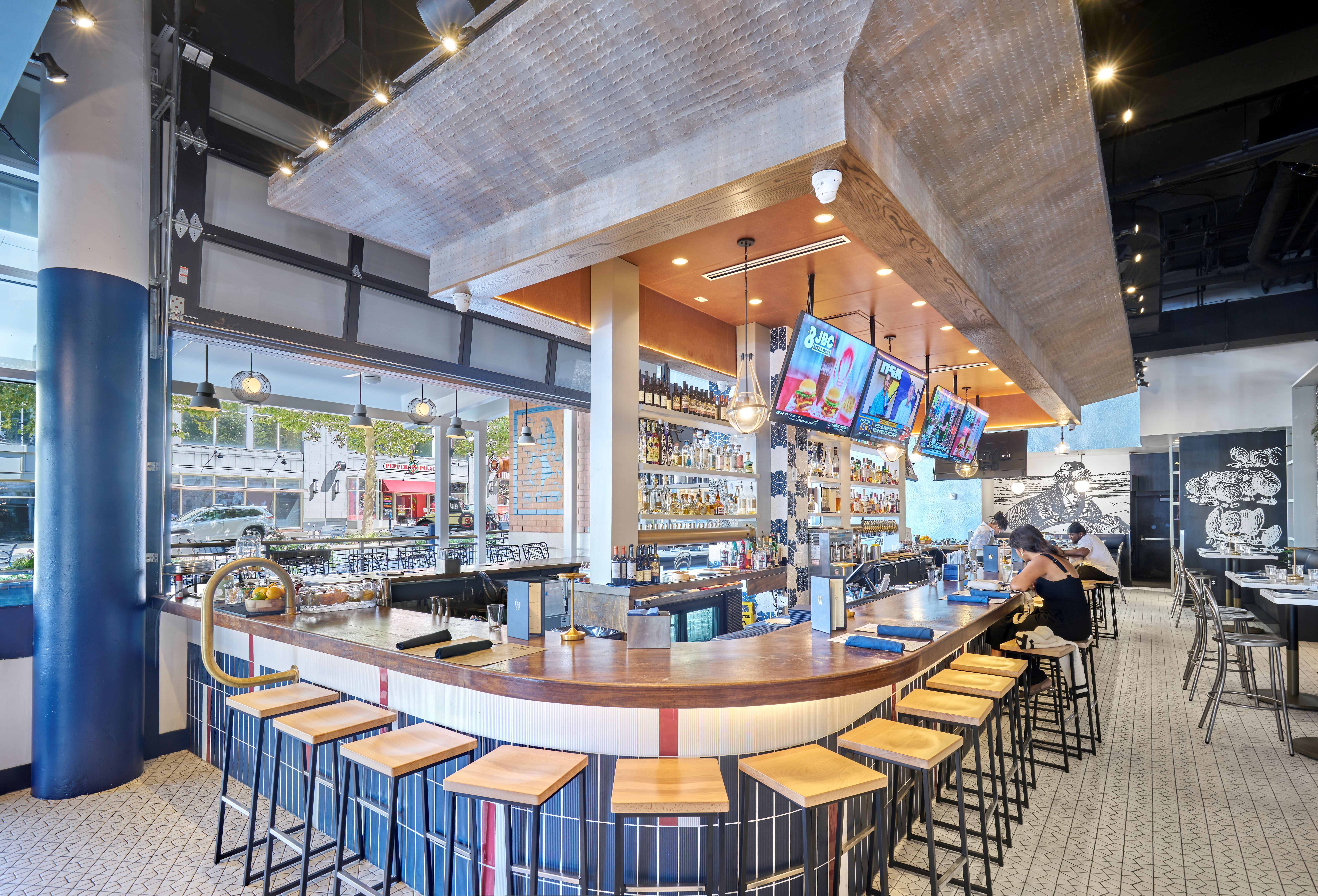 Bignell Watkins Hasser Architecture & Interiors (Bigwaha) provided architectural and interior design services for the renovation of The Walrus Oyster & Ale House, newly completed at National Harbor. The transformation reflects the restaurant’s focus on high-quality seafood and an elevated yet whimsical dining experience within a modern, coastal-inspired setting.